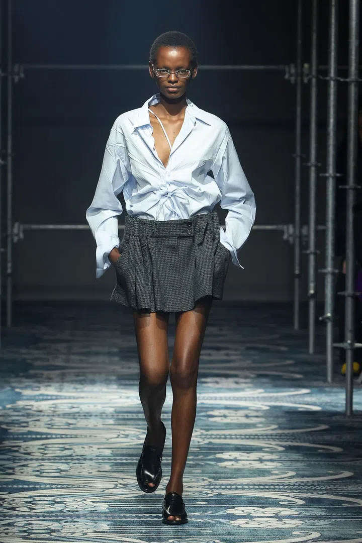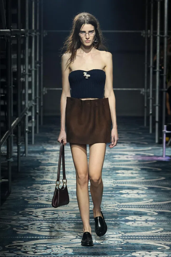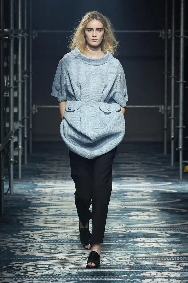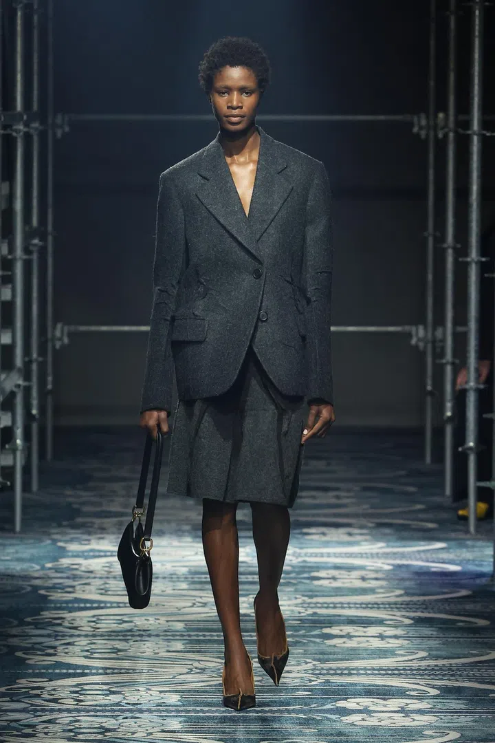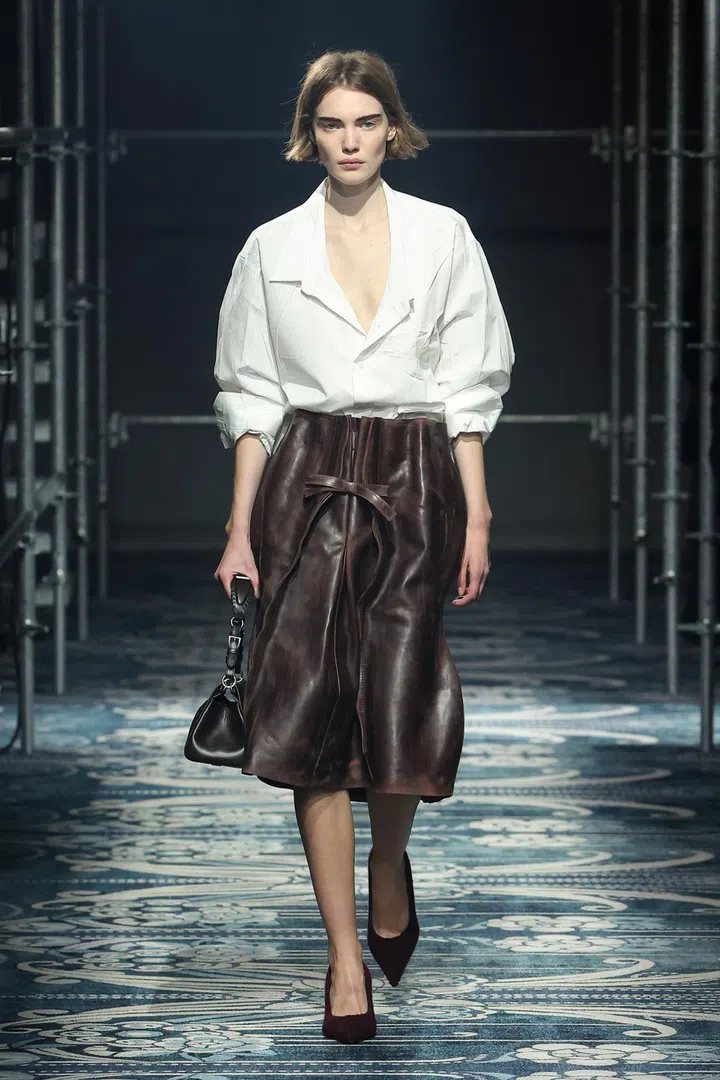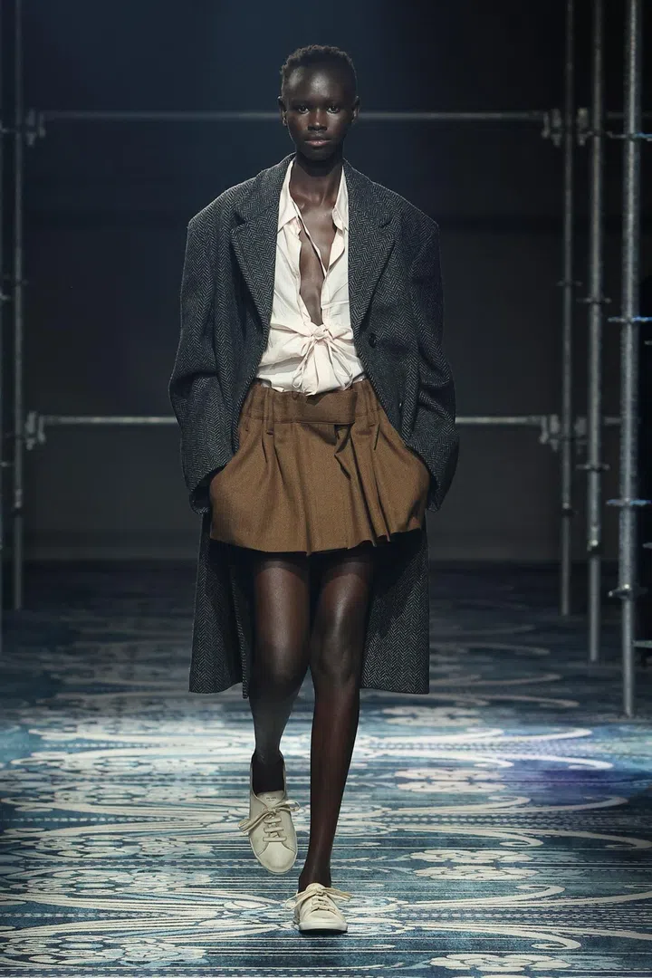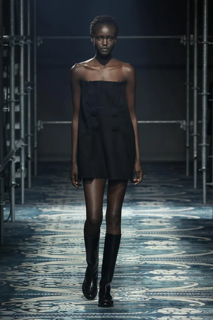 The show opened with a series of four black dresses - but make no mistake, they're not your classic LBDs (little black dresses). Instead, these looks hung loosely on the frame, with critics using words like "mousy" and "frowsy" to describe them - but in a good way. You see, the notion of "ugliness" has long been in the Prada DNA - Mrs Prada has always made it her mission to question stereotypes of beauty. In their bagginess, these dresses almost seemed to say, "so what?" to traditional silhouettes deemed more flattering for the female body. They served a woman who - genuinely - dresses for herself.