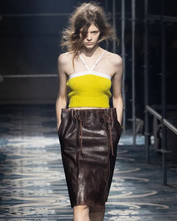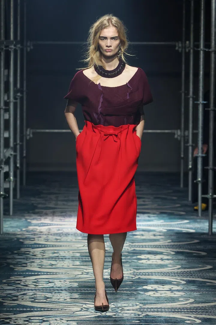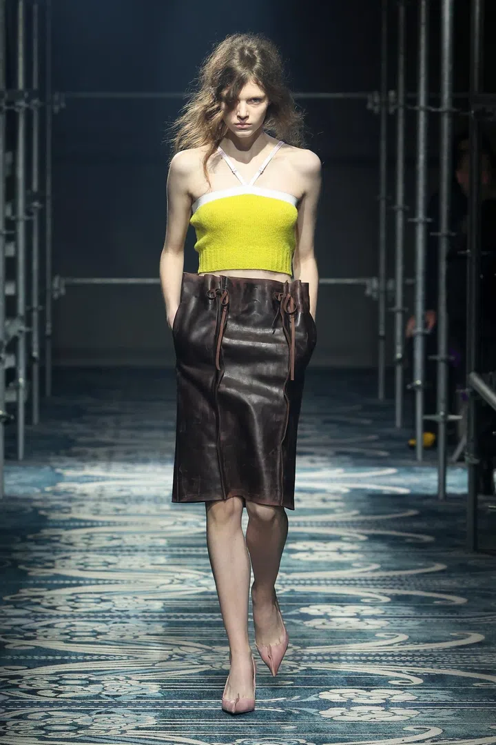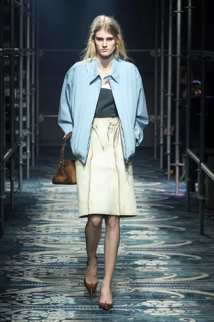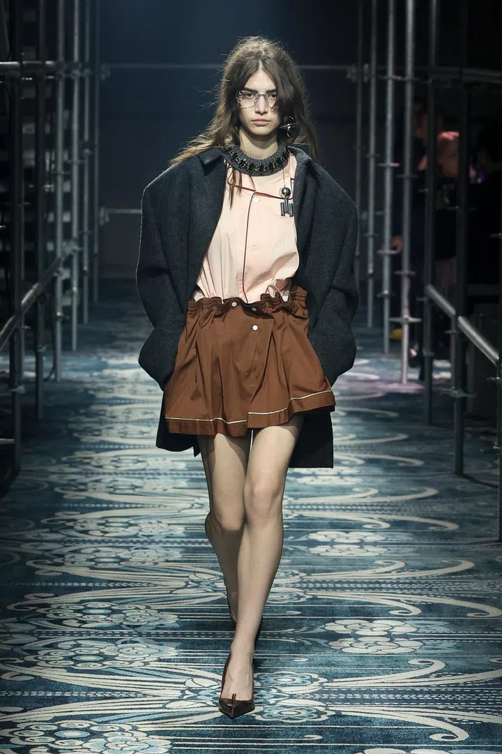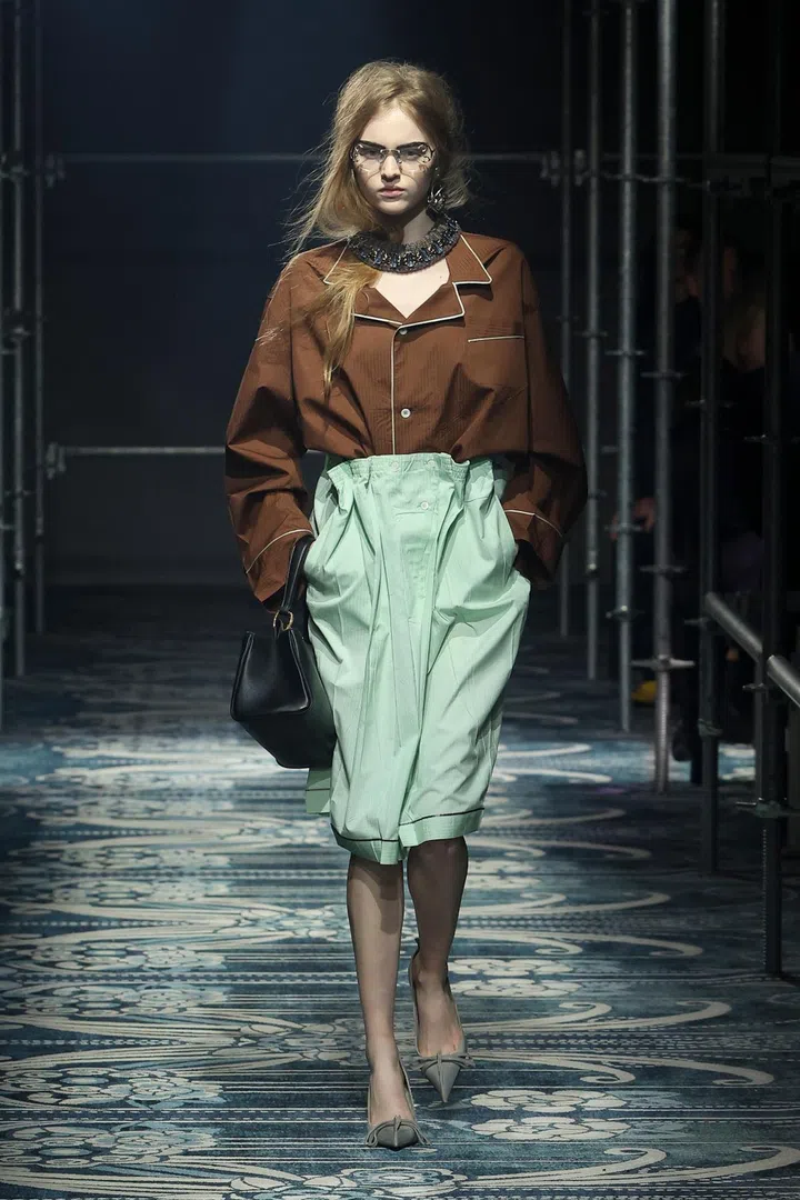This silhouette appeared on the majority of the looks, and with Prada putting its muscle behind this vibe, it's going to be trending for the year.