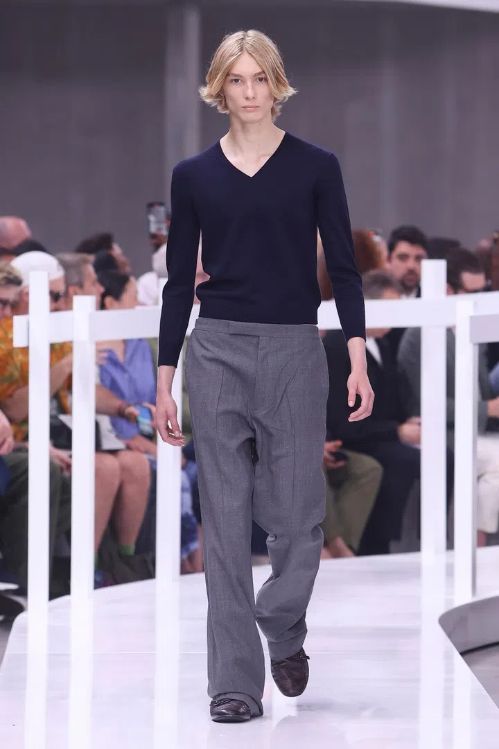 But we're also digging what seems to be the men's version of the Prada Buckle bag (looks 8, 30, 37, 38) that debuted at the brand's Spring/Summer 2024 women's show - it would make for a super chic work bag.