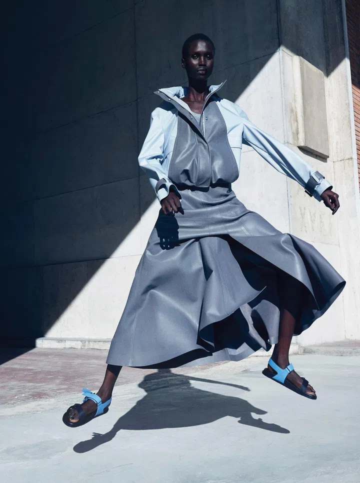 What do future-proof fundamentals big on uncluttered silhouettes – many of which are crafted in buttery soft (and upcycled) leather – have in common with what one wears for ballerina bod training? Admittedly not much – save for how they too make for ample and elegant ease of movement. Imbued with a hint of sportiness, the collection’s relaxed tailoring and roomy maxi skirts and dresses offer both sophistication and the comfort one yearns for post-gym. And we guess one can always work out in the timelessly cool knit tank tops?