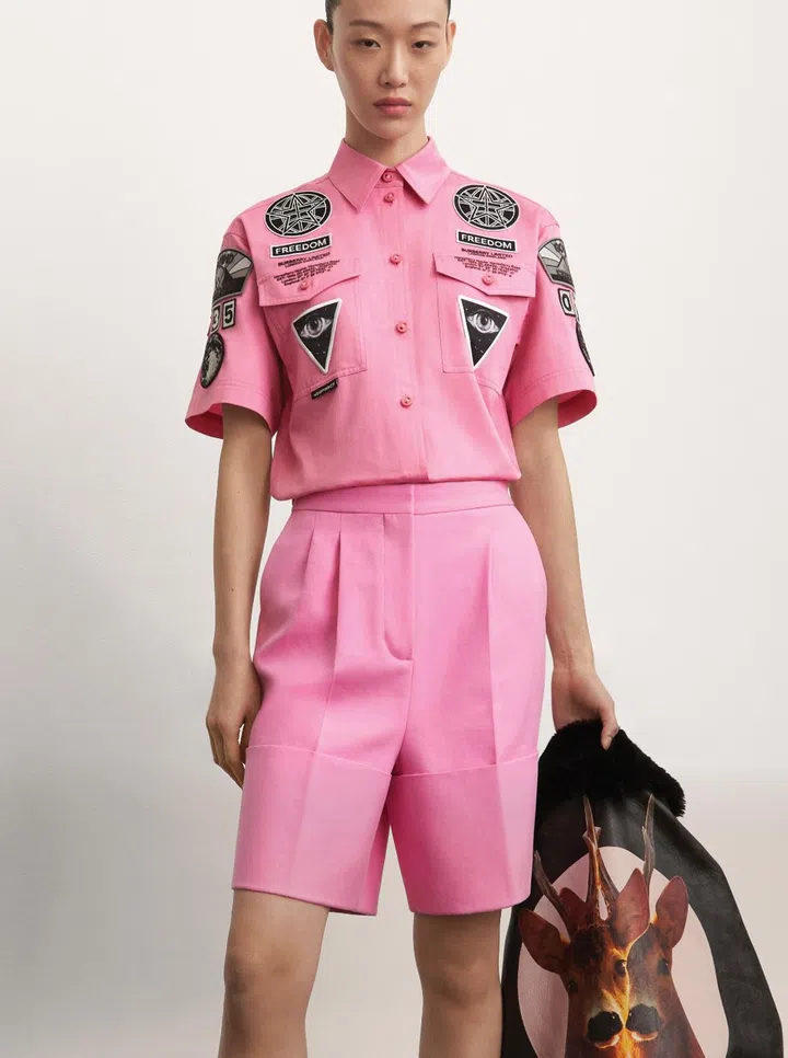 The English maison has always been synonymous with the outdoors – founder Thomas Burberry invented the water-repellent fabric gabardine and subsequently the trench coat. This season, creative director Riccardo Tisci made over similarly utilitarian staples such as parkas and field jackets with romantic floral and animal prints, coupled with broderie anglaise details – all in a nod to nature. And for something a little more playful: Boy Scout-style shirts in juicy hues and adorned with graphic patches.
