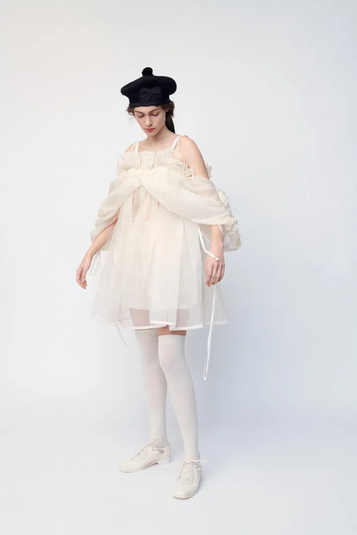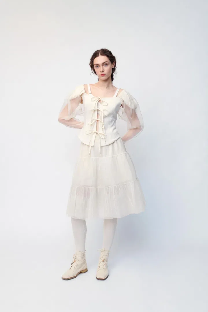 Su hails from China’s Fujian province but was besotted with the wardrobe of the particular period in British history growing up, and that fascination is imbued in every collection. Her customer is invariably attired in a delicate confection – usually in shades of cream, periwinkle blue or daffodil; the fabrics soft and crinkled just so, calling to mind antique christening gowns.