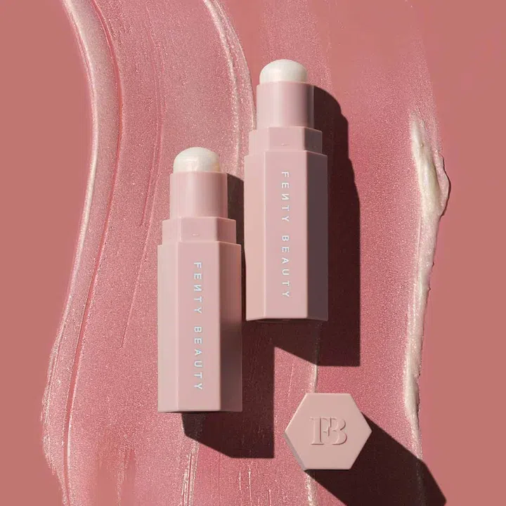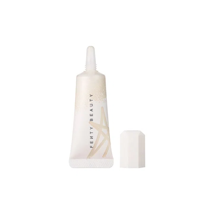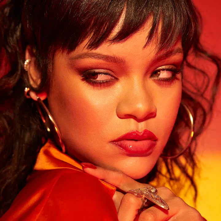 Next, we contoured her face using the Match Stix Matte Contour Skinsticks to add dimension. Then we applied Killawatt Freestyle Highlighter in the shade Trophy Wife on Rihanna’s cheekbones up to her temples, and onto the browbone for a really bold all-over glow. You could also achieve a similar effect with the new Liquid Killawatt for a more dewy highlight. We wanted the focus of the look to be beautiful glowing skin, so we kept the rest of the makeup really simple and finished the look with mascara and Gloss Bomb in Fenty Glow."
