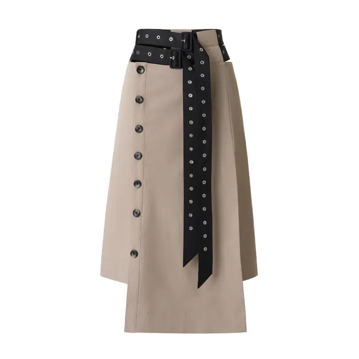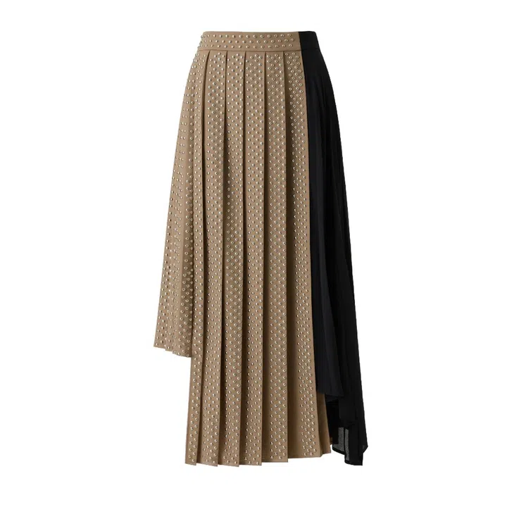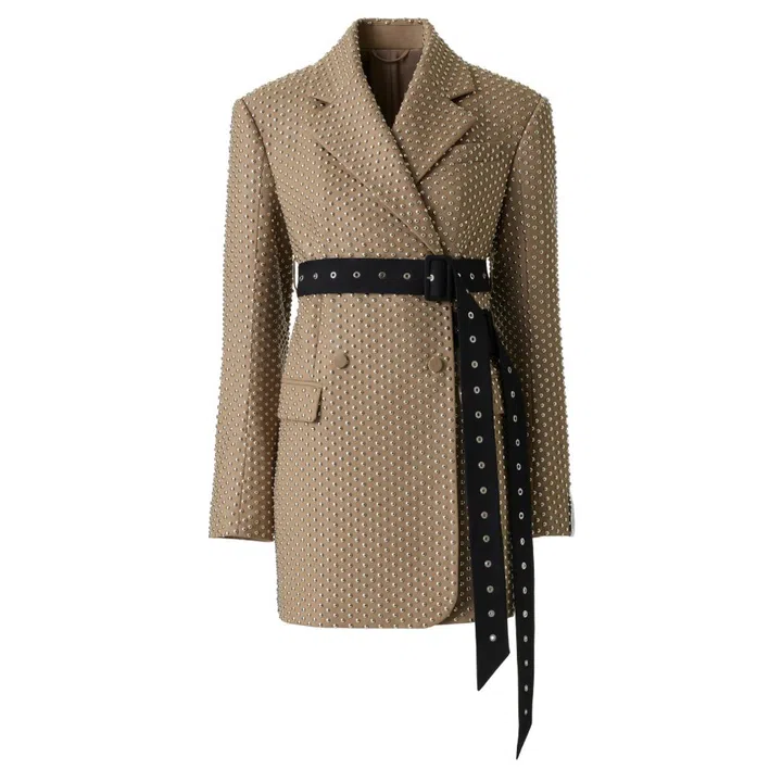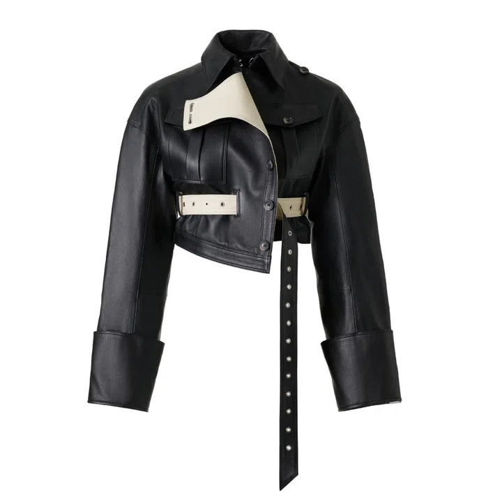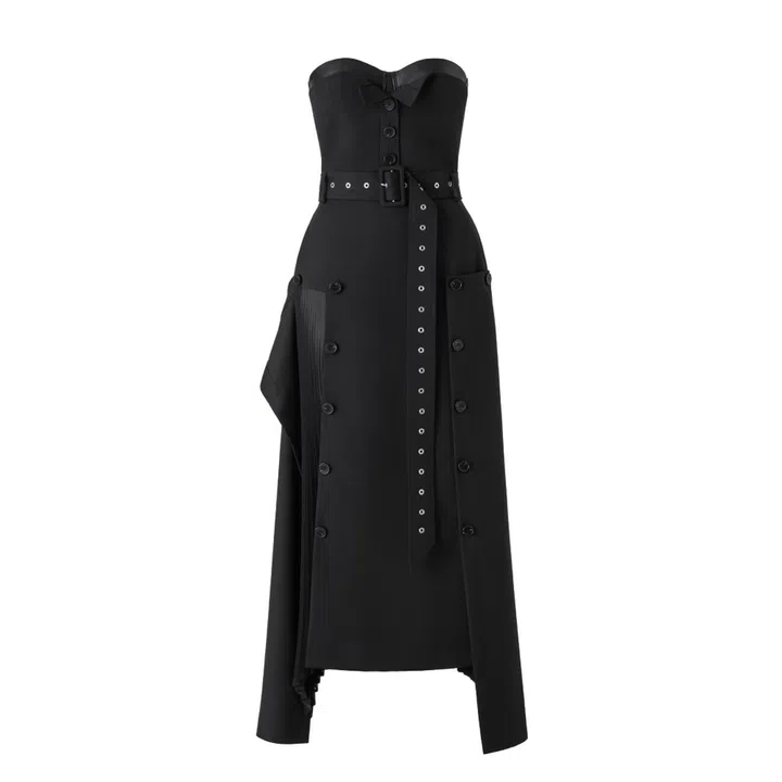 Other highlights include detachable-hem dresses, structured trench coats, and leather jackets. Accessories such as bags inspired by office necessities like files and briefcases, along with two-tone jewellery, complement the clothing pieces.