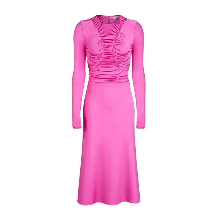 This redeeming quality of the ruched dress was not lost on designers Lazaro Hernandez and Jack McCollough of Proenza Schouler. They showcased a fun and elegant tangerine dress with side gathers, rendered in a luscious velvet material. Lebanese fashion designer Zuhair Murad, a maestro of red carpet looks, was equally enamoured with this detail, applying it to an array of slinky column gowns in bejewelled tones of purple, pink and yellow.