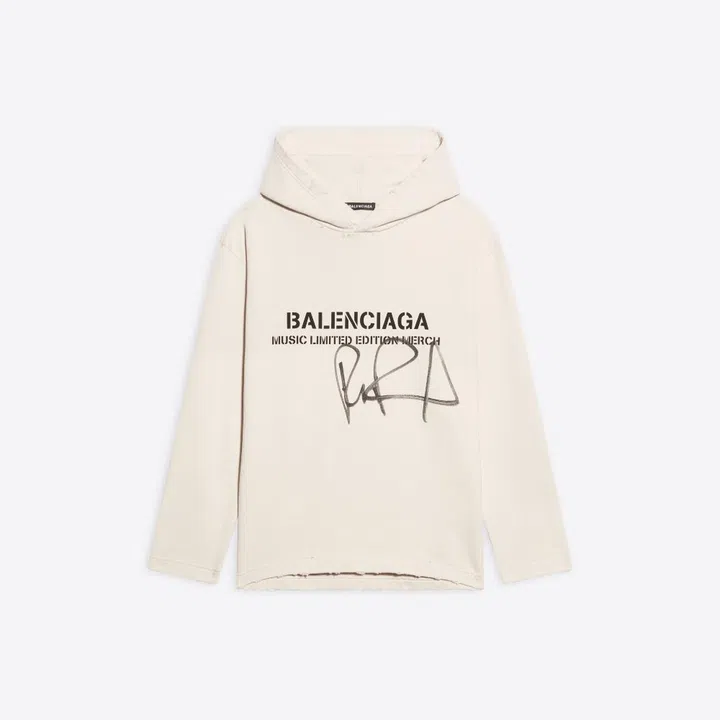Accompanying the playlist is a limited-edition Balenciaga x RuPaul capsule collection comprising unisex tees, hoodies and caps emblazoned with RuPaul’s signature across the words “Balenciaga Music Limited Edition Merch” in spray-stencil lettering, as well as a campaign starring RuPaul herself alongside New York nightlife fixture Susanne Bartsch and friends of Balenciaga.