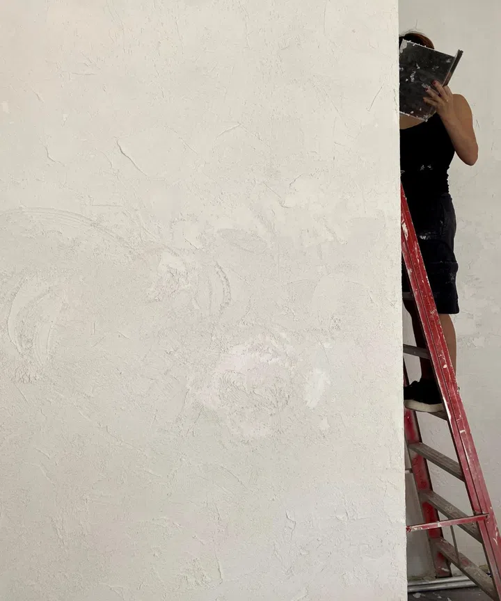 Clock the textured clay wall in the store, which is a DIY masterpiece of the Rye team.