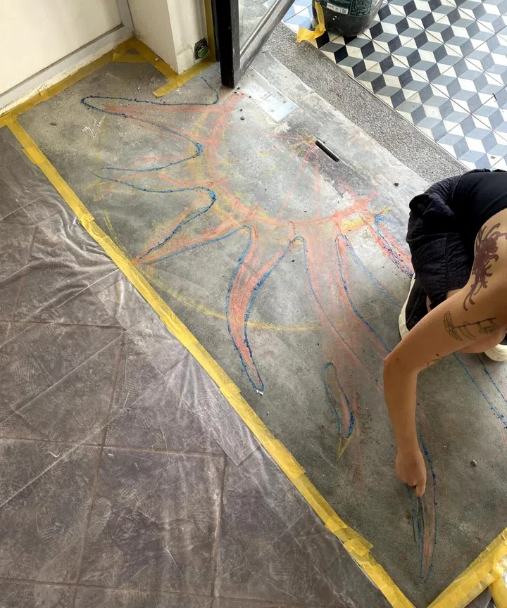 Laying the foundation for the entrance to the Rye boutique at Joo Chiat