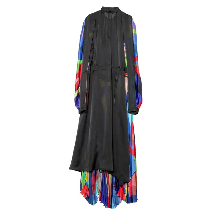 A look from Sacai's collaboration with the contemporary artist Kaws.