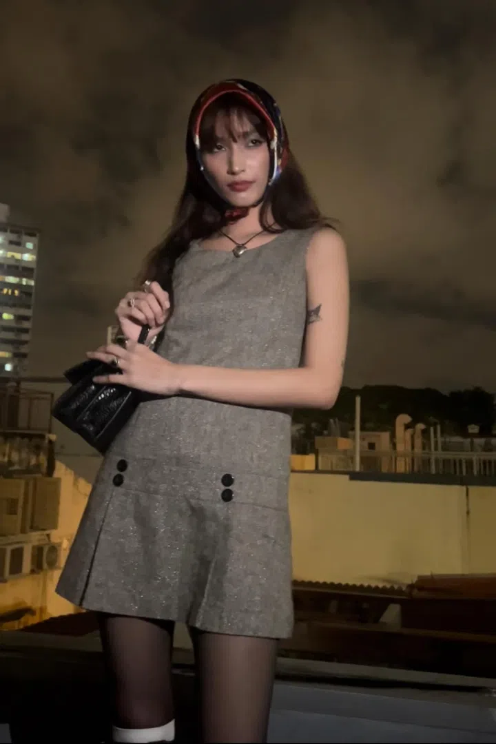What she is wearing: Dress and leg warmers from Taobao; Mango bag; and thrifted shoes