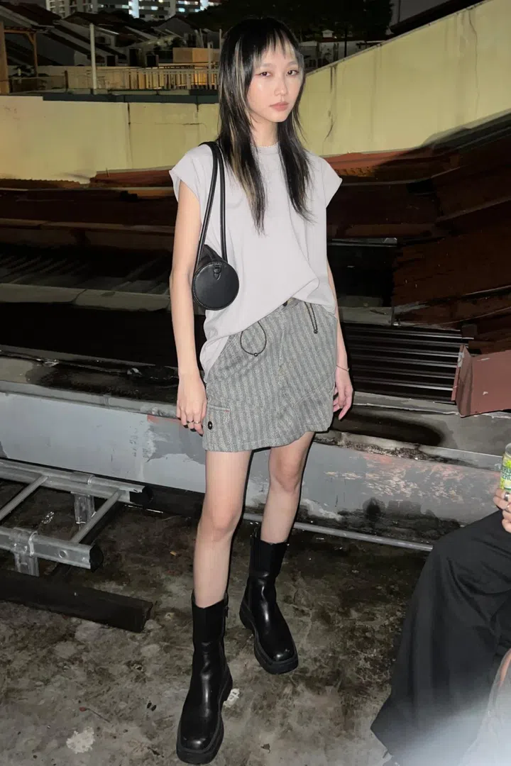 What she is wearing: Top from Taobao; thrifted skirt; Charles & Keith bag; and Vagabond boots