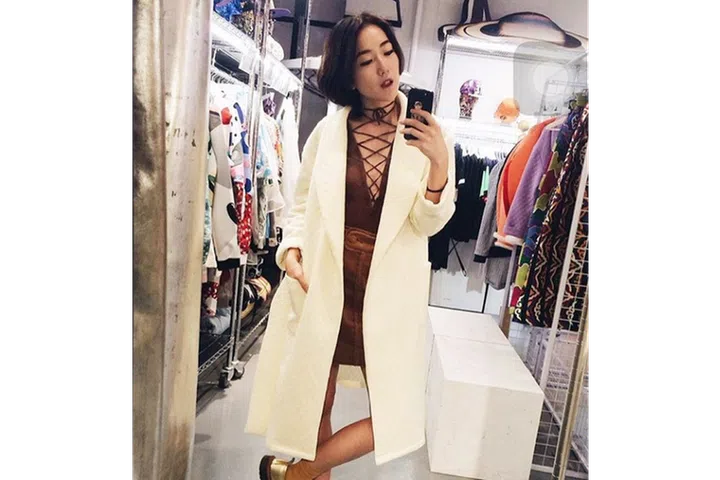 The Female Collective's Linda Hao at Superspace wearing Yesah's Tibetan-inspired bathrobe. Photo: @thesuperspace Instagram