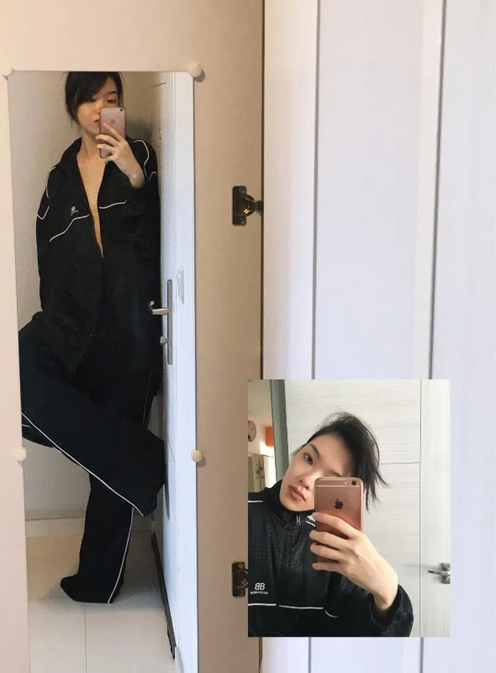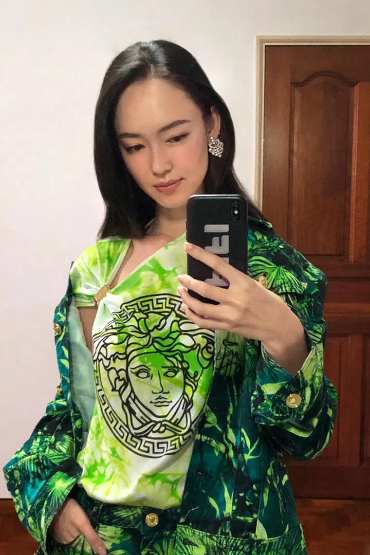 Model/three-time Female Singapore cover girl Layla Ong wears jacquard tracksuit, Balenciaga.