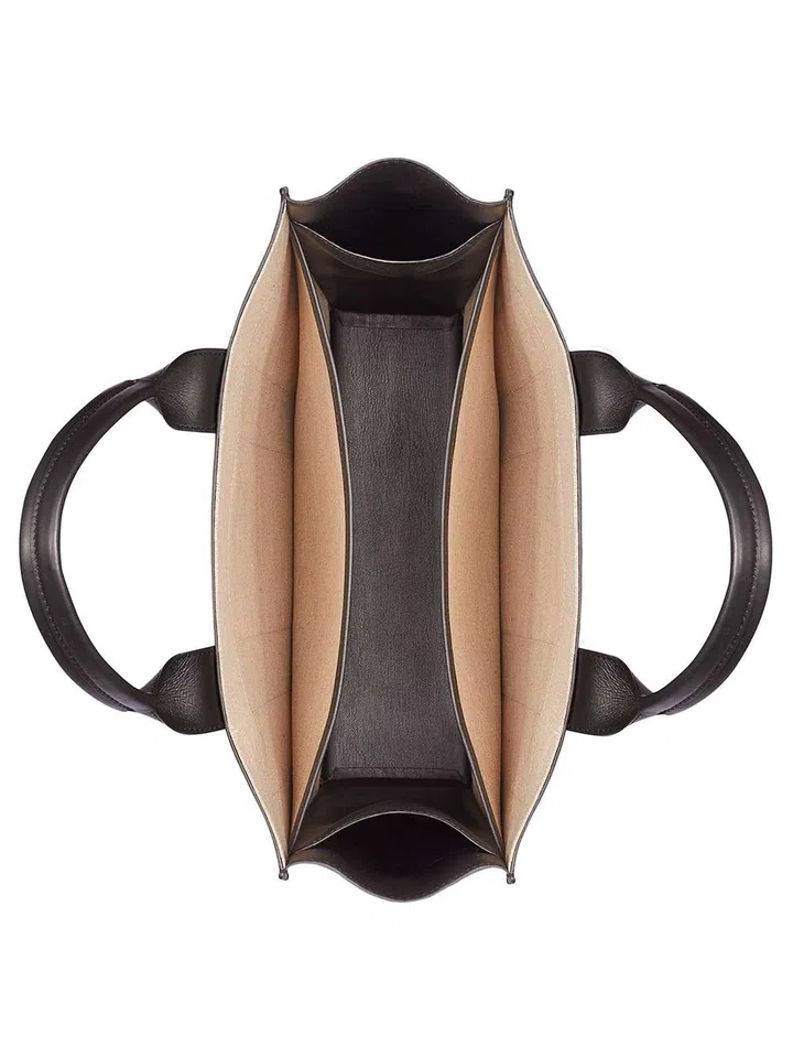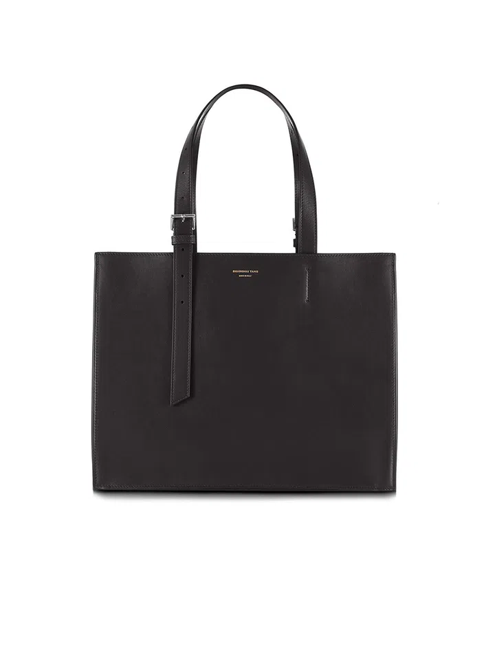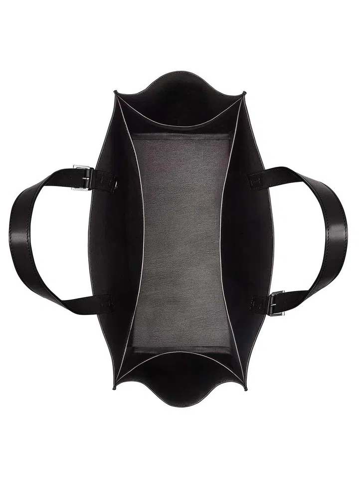 The leather North South tote in all black is an enduring example of a stylish, well-made bag that can fit everyday essentials and more.
