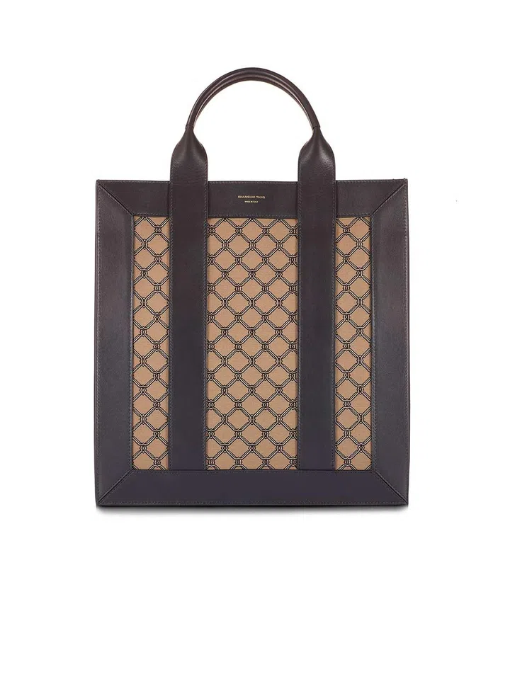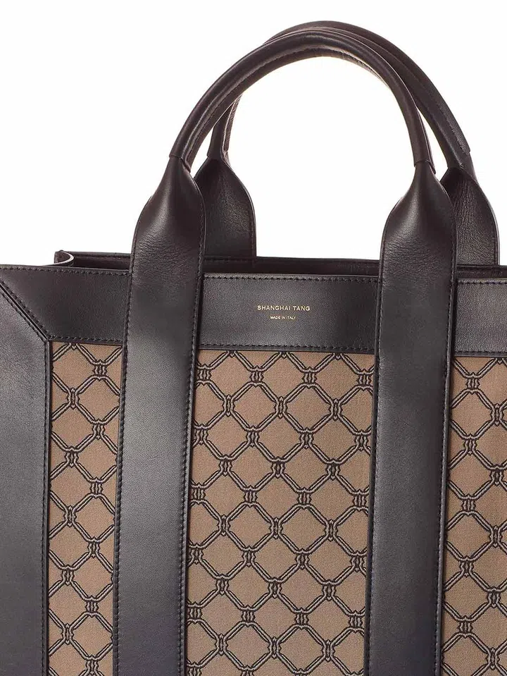 Yuni Ahn for Shanghai Tang Lattice Jacquard North South leather and canvas tote, $1,325, Shanghai Tang