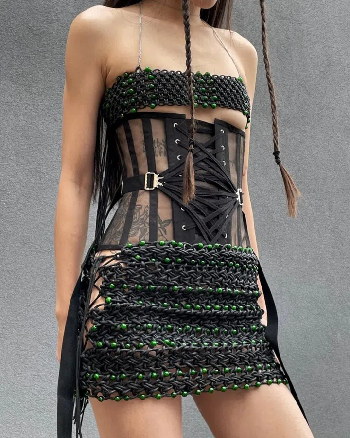Recently the Singapore-born Taiwanese artisan has seen her hand-crafted creations – gauzy, gothic-charged knits so sensual they blur the boundaries between clothes and lingerie – turn up on digital-age celebrities. The virtual influencer Lil Miquela; the 1.3 million-follower-strong models/reality TV stars, the Clermont Twins; even Charli XCX wore a custom number to the 2021 MTV Video Music Awards.