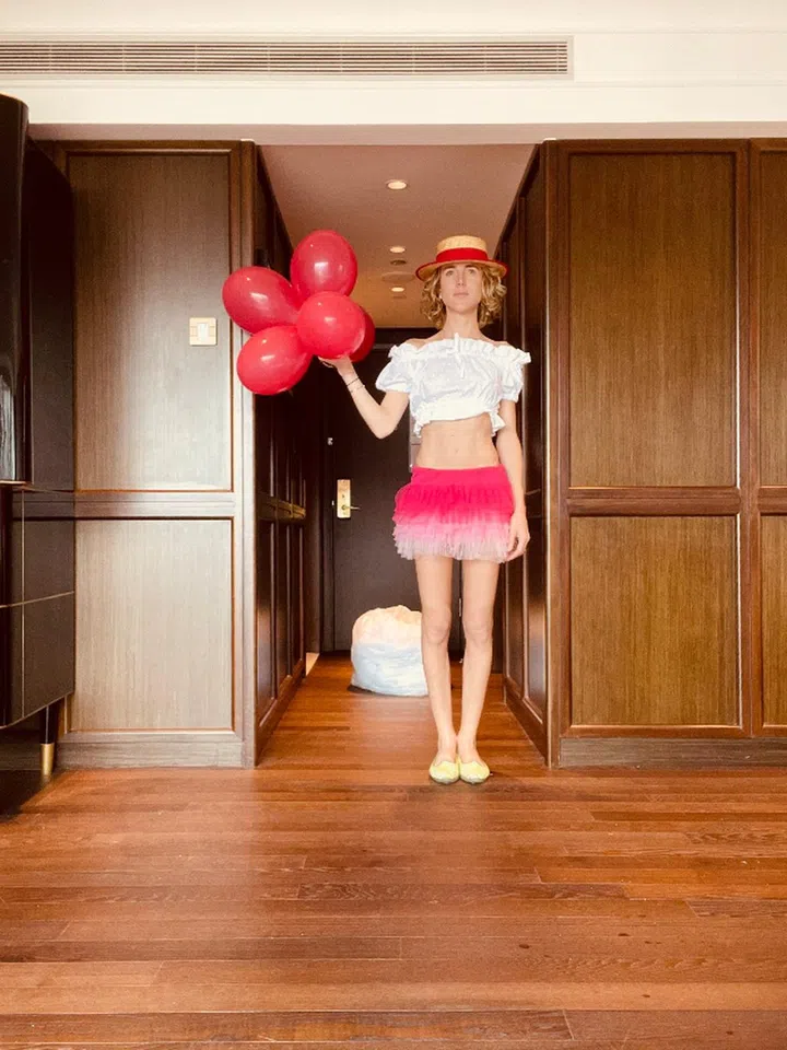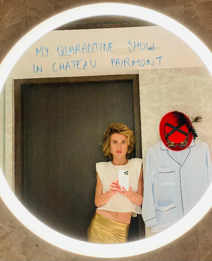 Turning her hotel suite into a zany fashion playground, the 35-year-old came up with what she dubbed The Quarantine Show as a creative project to document her experience during Covid confinement. That fun outlet also allowed Testori to revisit her love for performing and to tap into her passions in styling and pop culture.
