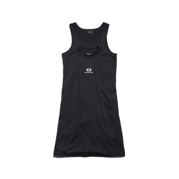This top features a T-shirt insert at the front and back. It is a scoop-neck, sleeveless piece, with a Unity sports icon embroidered on the front.