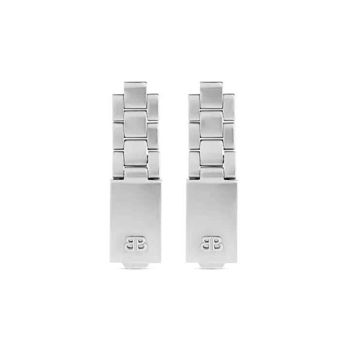 These dangling earrings feature a unique watch band design, with the Monaco BB logo displayed at the bottom.