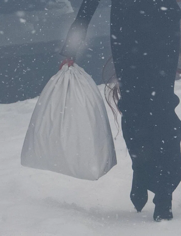 Balenciaga is known for appropriating everyday ordinary items and turning them into It bags. We’ve seen it with the Barbes bag that reimagined those large market bags as well as other riffs on bags such as the ubiquitous blue Ikea shopping bag and plastic grocery bags. For the winter show, Demna turned to the trash bag as the starting point of the season's key bag. One can read that choice in the context of his original intention of the show as a commentary on the callous actions towards the environment with the amount of waste we generate. But one can also read into how the trash bag is often used by refugees as a means to hold all of their prized possessions as they make the run from the evils of political violence.