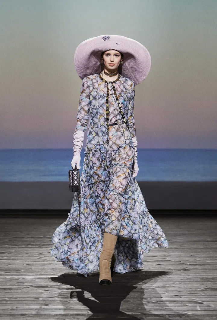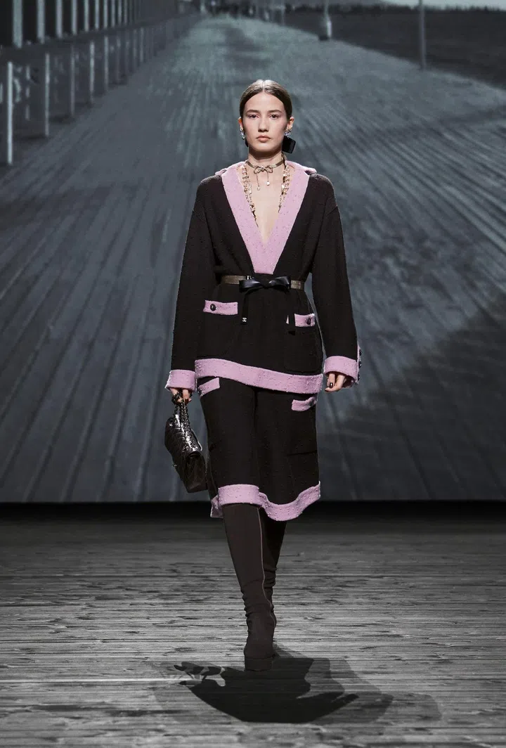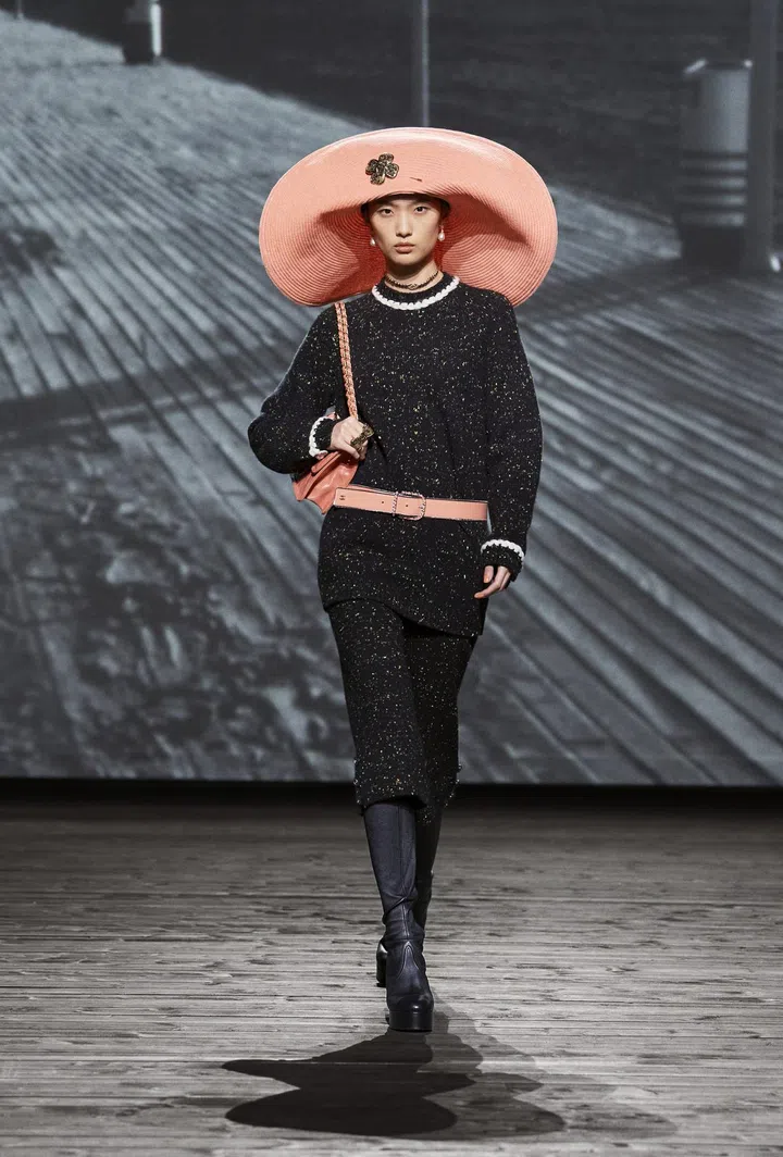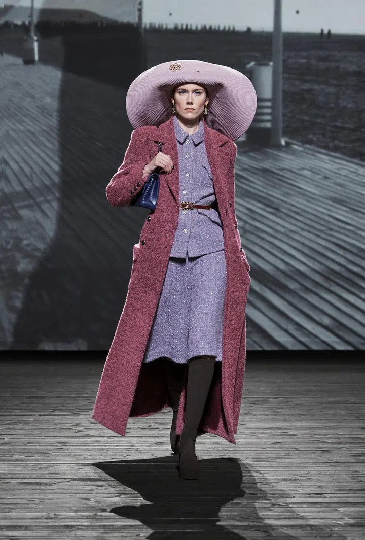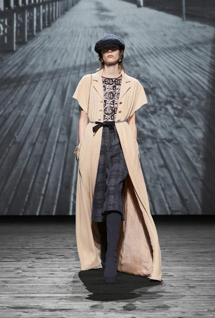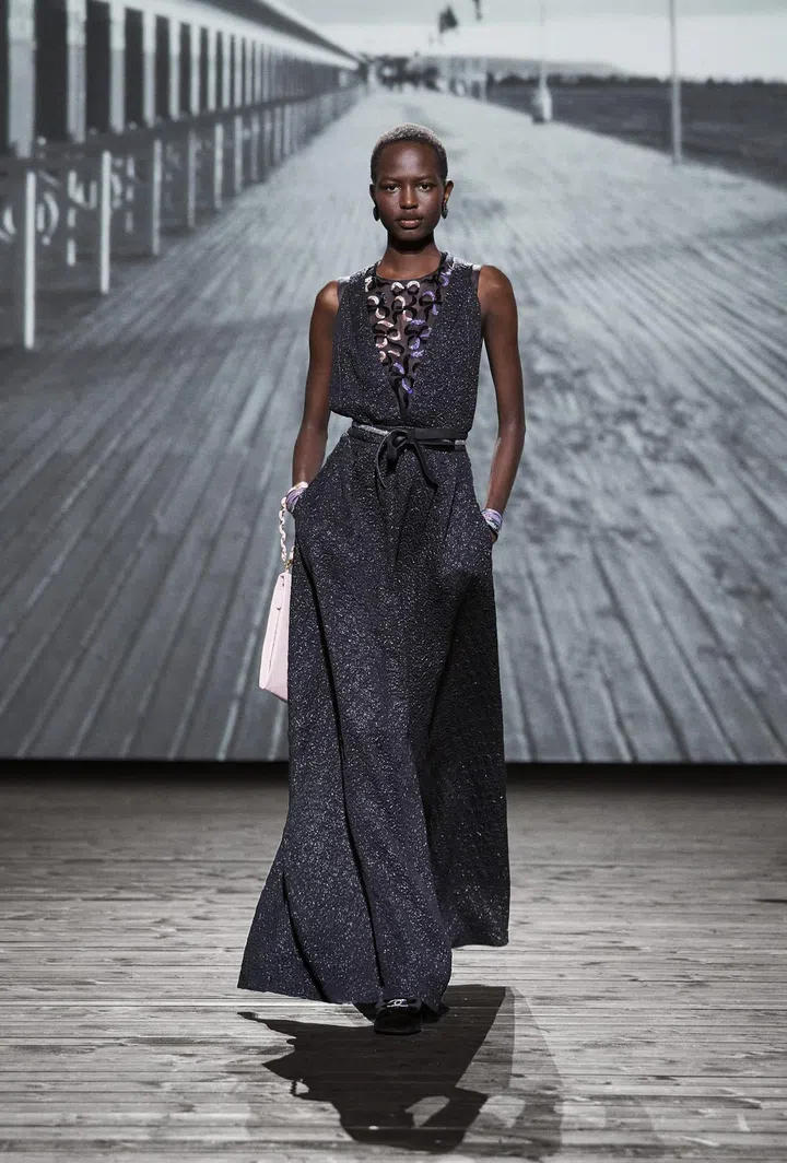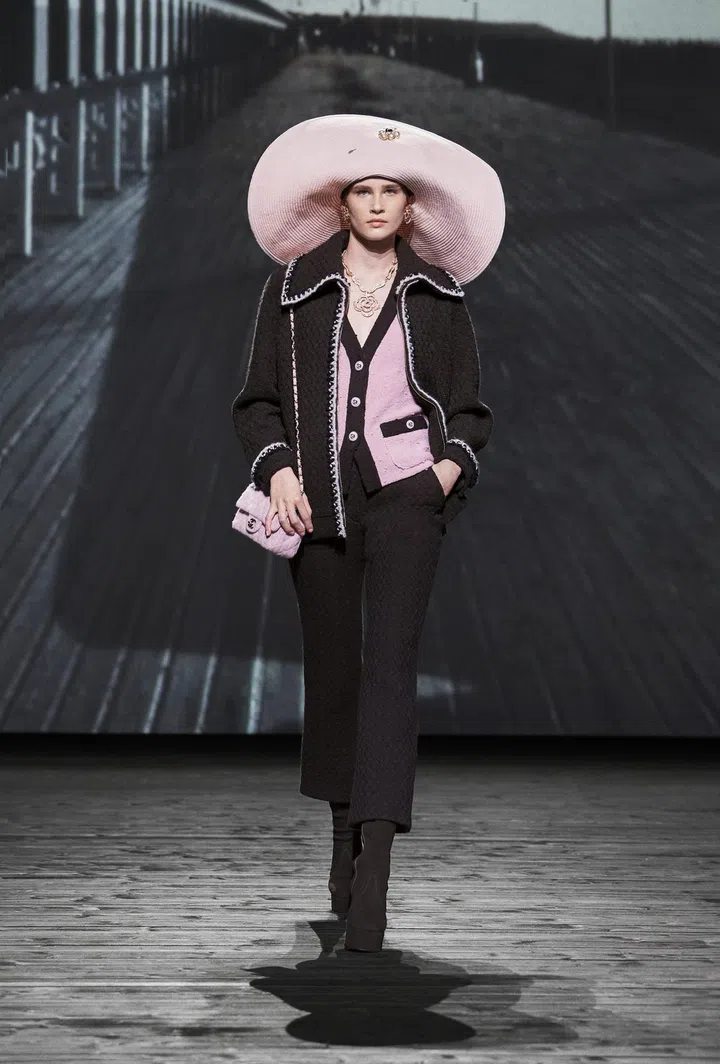Where: The setting of the show was dominated by a giant structure sprouting in the middle of the runway. The latter was decorated to resemble a boardwalk, mimicking Les Planches, a 1920s boardwalk in the French seaside town of Deauville where Gabrielle Chanel opened her first boutique in 1912.
