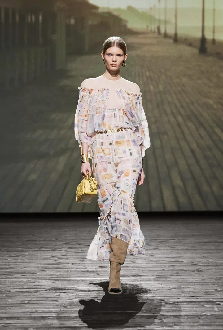 The takeaway: Chanel's iconic 11.12 flap bag, also known as the Classic, undeniably takes centre stage in this collection by Virginie Viard. It even enjoys prominent product placement in the show's opening short film, paying homage to the classic French film Un homme et une femme (A Man and a Woman) by Claude Lelouch from 1966, featuring Brad Pitt and Penelope Cruz in lead roles.