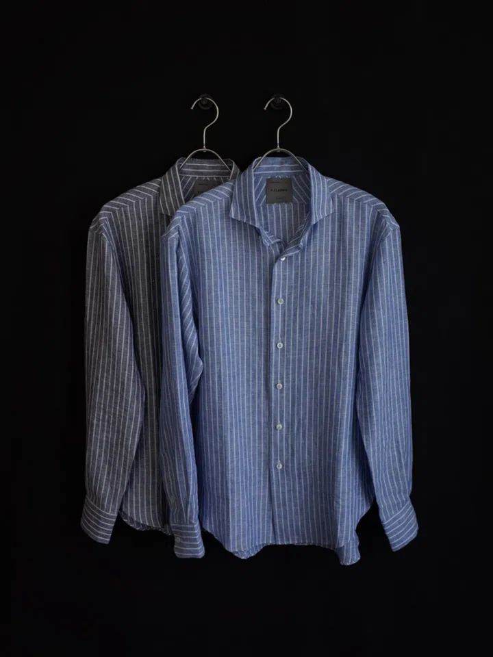 "The latest F. Classic Striped Linen Shirt. This product is made using the best materials and embodies the spirit of our brand."