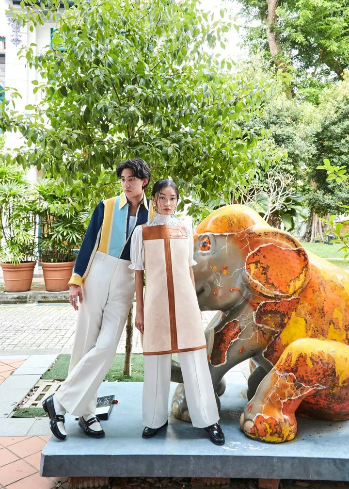 She’s been challenging the look and approach to wearing luxury jewellery since 2014 when she started her label Lauren X Khoo (see the notably hefty curb chain necklace encrusted all over with diamonds that she wears here – it’s among her latest designs). This idiosyncratically fashionable 36-year-old (her favourite brands span Celine to Oscar de la Renta) is also an art connoisseur – a visual arts trained collector who’s been on the board of the Asian Civilisations Museum since 2018. In short, if there’s anyone to mine for thoughts on the intersection of luxury, fashion and art, it’s her.