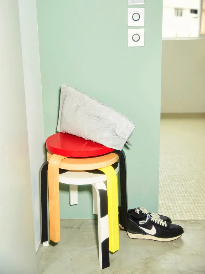 "Walk past the kitchen and you’ll find some Artek 60 stools (opposite, bottom right) by the entrance that I’ve accumulated over the years, including a polka-dotted one that’s a special Comme des Garcons edition. They’re meant for guests, but I like them stacked in the corner and looking like sculpture."