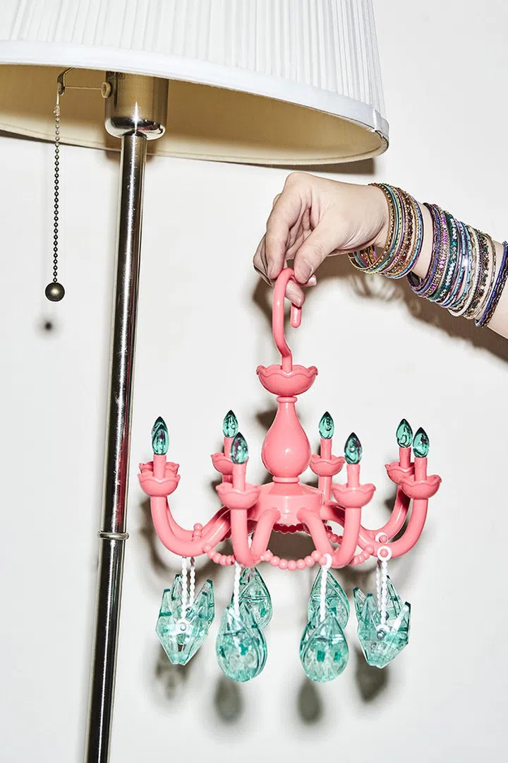 Besides collecting kitschy-cute items like this chandelier hanger she bought in Japan, Kato has a huge collection of Indian bangles from Little India.
