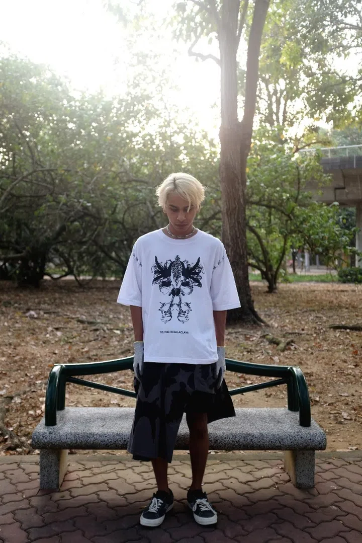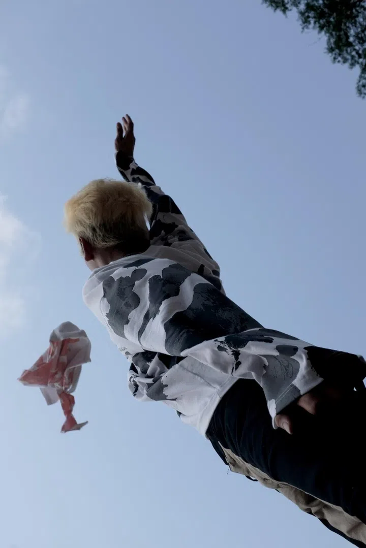 Their newest proposition is the recently-debuted 'Lost In Transit', the latest of their already extensive repertoire of clothing collections (some of which you can still cop on Dover Street Market Singapore's website). Described by the collective's Instagram page as a collection that "aims to give strength and courage to us all as a collective Sisyphus", 'Lost In Transit' stays in line with the group's affinity for exploring politics, society and culture. The result? A multi-apparel line-up of graphic T-shirts and hoodies emblazoned with block-coloured paint silhouettes as well as customised chucks – which has slowly become a YIB trademark of sorts.