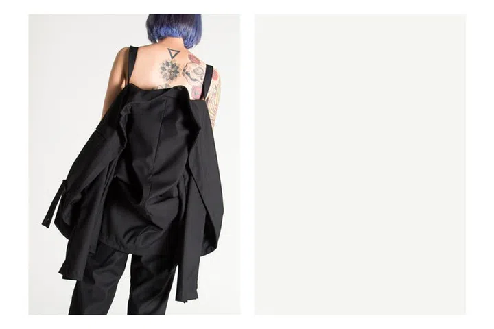 They held a low-key party in April at the industrial Ubi area to debut their capsule collection - the Vetements-esque approach to showcasing their design perfectly reflected the discreet ethos of their fledgling brand. Perhaps it's the more industrial nature of what they do (architecture and engineering, hello?), but the five-piece collection, though small, feels extremely consise and considered. Reasonably priced between S$180-$300, the collection comprises of two white shirts, two pants and my favourite, a jacket that can be worn in multiple ways, laissez faire style, via hidden straps, as seen below.