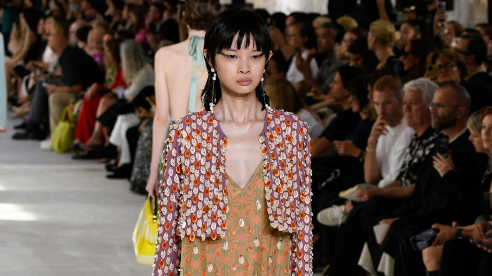 Eng wore Look 49 for the Dries van Noten Spring Summer 2024 collection, which comprised a bolero and dress embroidered with teardrop-shaped paillettes.