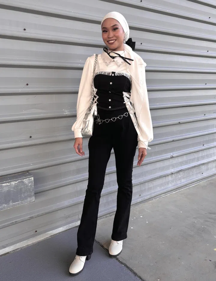 Inspiration behind her outfit: “My inspiration comes from artists like Madison Beer and Ariana Grande. Since I wear a hijab, I have to create a halal version – not too revealing, but still fashionable!”