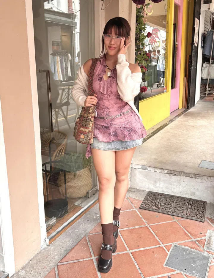 His go-to thrifting spot: “My go-to thrift shops are definitely the ones in Lucky Plaza! They have such unique and affordable pieces, which I love.”