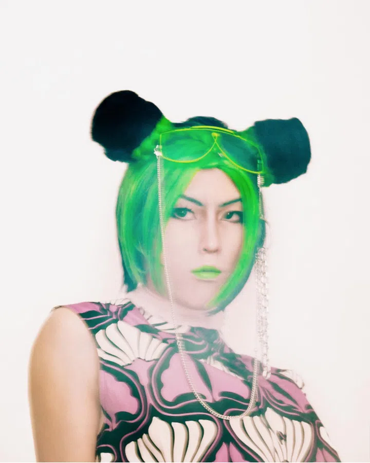 Kuroba wears wool jacket, Max Mara, and metal sunglasses, Gentle Monster. All other clothes, accessories and props, subjects’ own