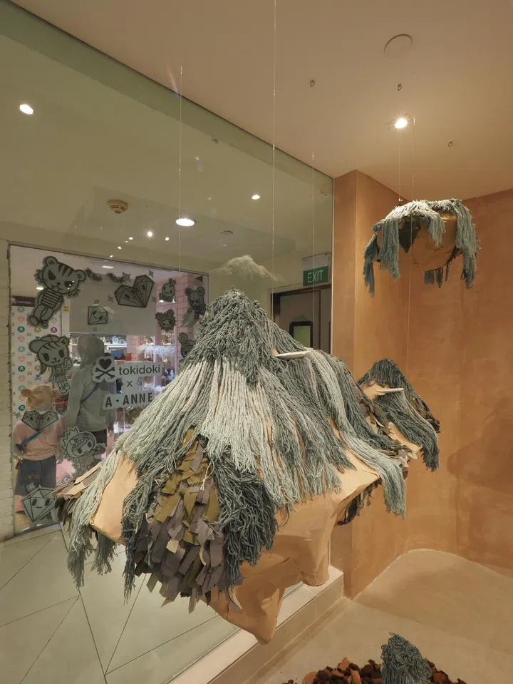 Behind the installation is a cosy sitting area decorated with linen and cotton throws and cushions from local designer Stacy Tan of Yabai Yabai that invites customers to experience SIX nebulisers in a home setting.