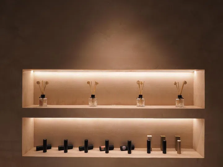 Artworks, textures, scents and soothing colours come together to deliver a multisensorial, spa-like at this boutique.
