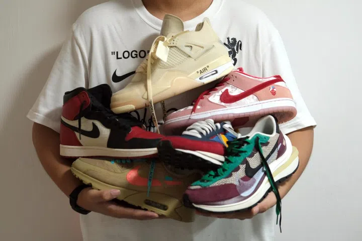 Because of the shoe’s limited numbers and link to Abloh, its price in the secondary market prices went up to more than five times its retail price of US$160 (S$218). So Yeo sold his pair and took part in more raffles. Today, the Nanyang Technological University graduate has a collection of almost 30 pairs of shoes that he wears in rotation.