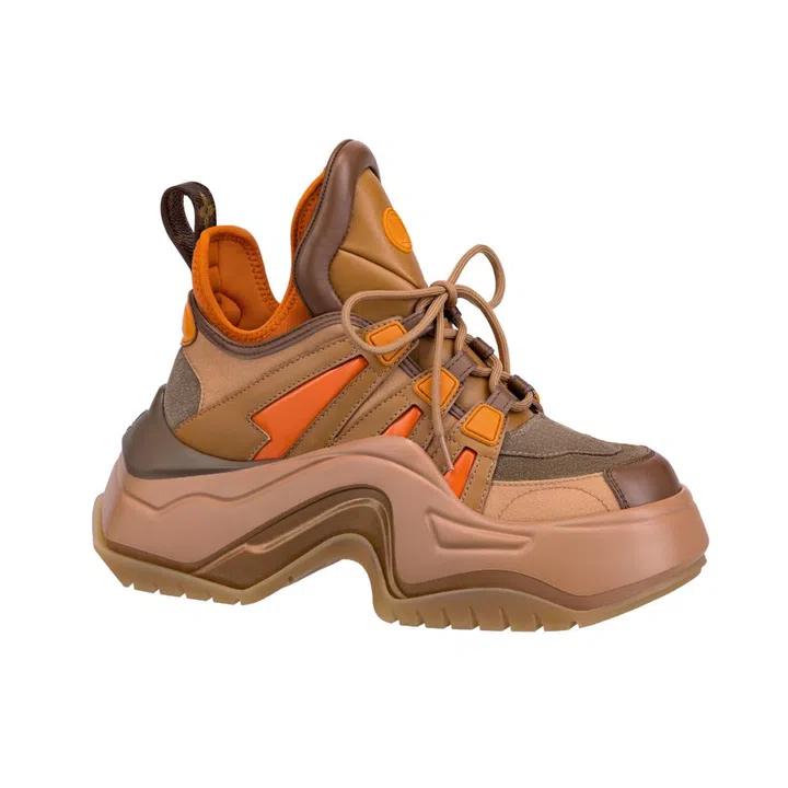 The iconic Archlight sneaker from the maison gets an update with oversized rubber outsoles, and draws upon hiking boots to inspire its melange of brown and orange tones.
