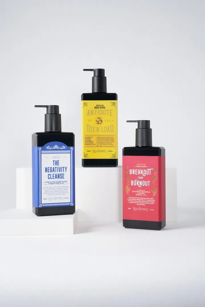 Want a quick body (and soul) cleanse in the shower? The Negativity Cleanse is said to wipe out bad vibes with its rehabilitative and healing essential oils consisting of vetiver, geranium, lavender, and rosemary. Detoxify with the Antidote To Your Toxin Load that's a combined mood-lifter and muscle reliever comprising of essentials oils like orange, cypress, grapefruit, and patchouli. And if you're in need of a sedative cure from burnout, the Breakout From Burnout body wash is composed of bergamot, grapefruit and orange that will re-energise and nourish the body of nervousness, anxiety and stress.