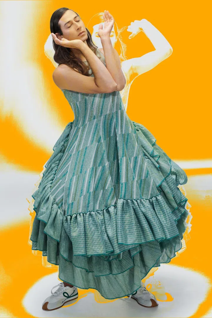 Absent-minded doodling during lockdown was the start of Christopher John Rogers’ collection. “It’s the idea of energy emerging as something visceral as opposed to representational,” said this new boy wonder of American fashion when it was revealed last October. “It reminded me of drawing as a kid... I just wanted to have fun and express myself.”