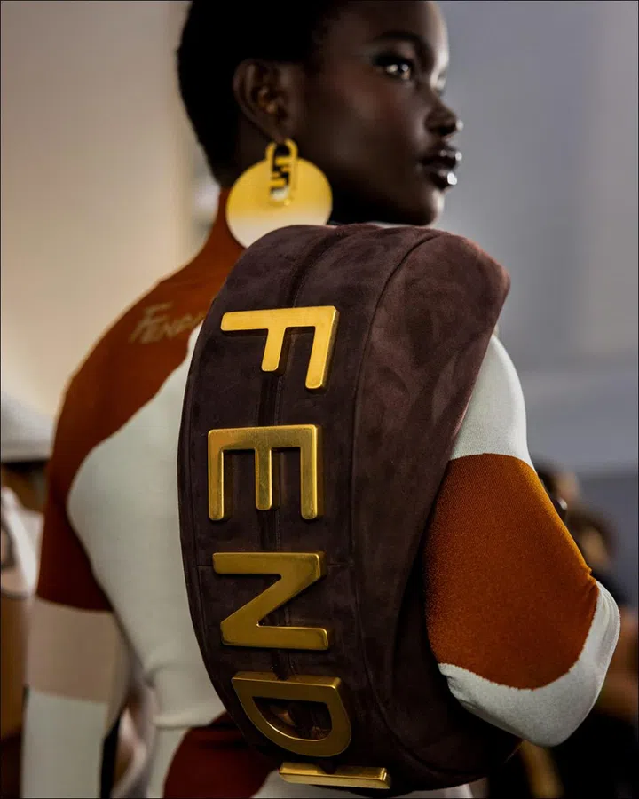 PERSONALITY: A lover of wit and life, Fendigraphy likes to charge ahead, leaving admirers watching from behind – cue the oversized logo in gold-toned metal across her base that’s only visible when she’s perched or hoisted high on the arm of her companion. Her crescent-shaped curves and plush exterior (soft calf leather, suede, python or croco) also mean that she’s perfect for cosying up to.