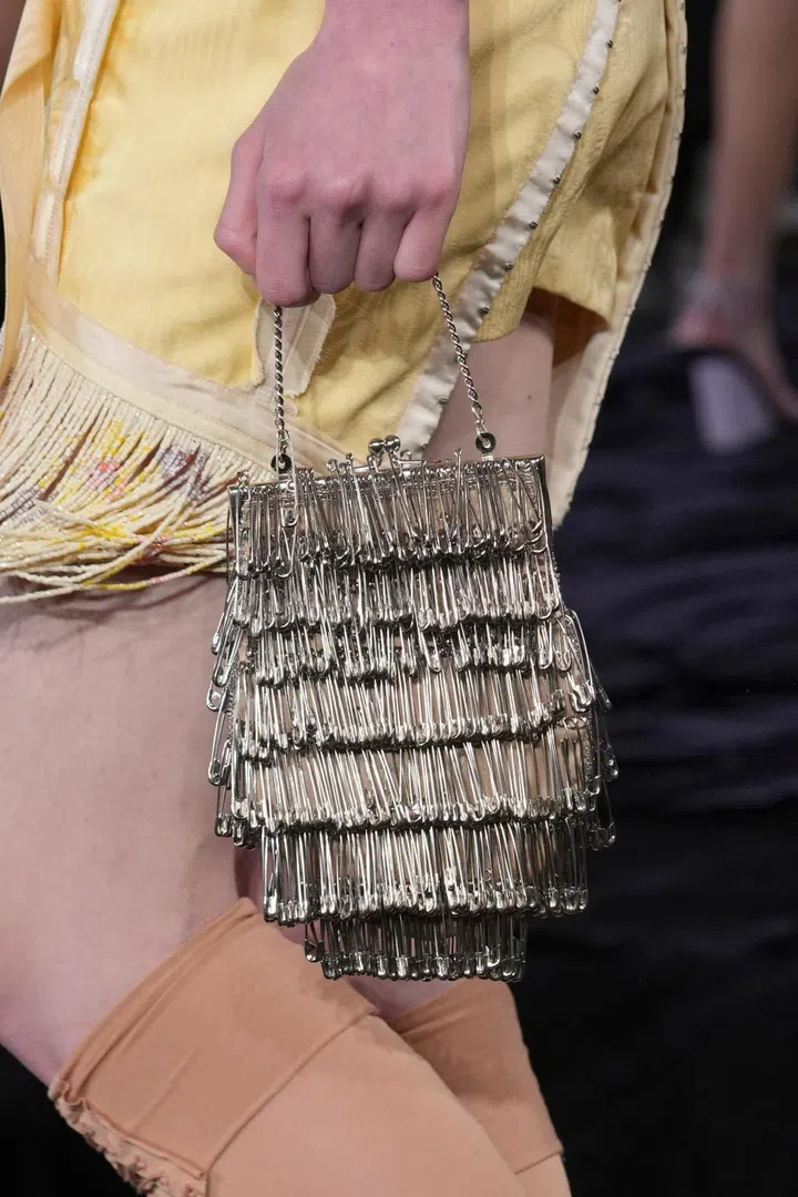 Acne Studios’ gilded safety pin purse – one of the most innovative and glamorous uses of the prosaic fastener we’ve seen.