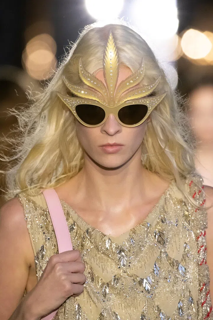 Sunglasses to go from street to masquerade party from Louis Vuitton’s time-travelling “grand bal” of a collection.