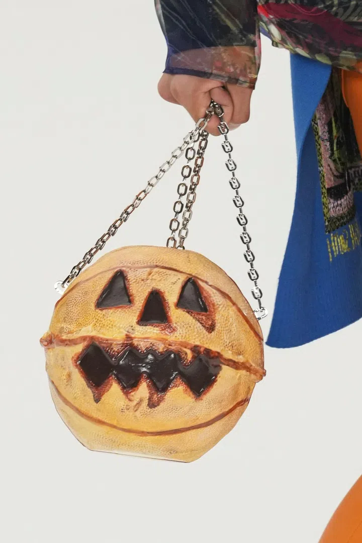 A trick-or-treat bucket for art-loving adults from Givenchy, which has teamed up with American artist Josh Smith – known for his dark and irreverent works that blur the lines between good and bad taste – on prints and accessories such as this handbag.