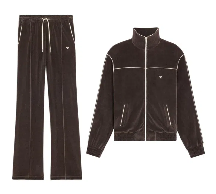 Celine by Hedi Slimane velvet jersey track jacket, $1,500, and matching track pants, $1,150, Celine