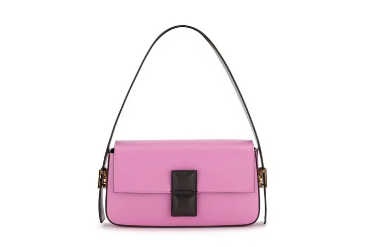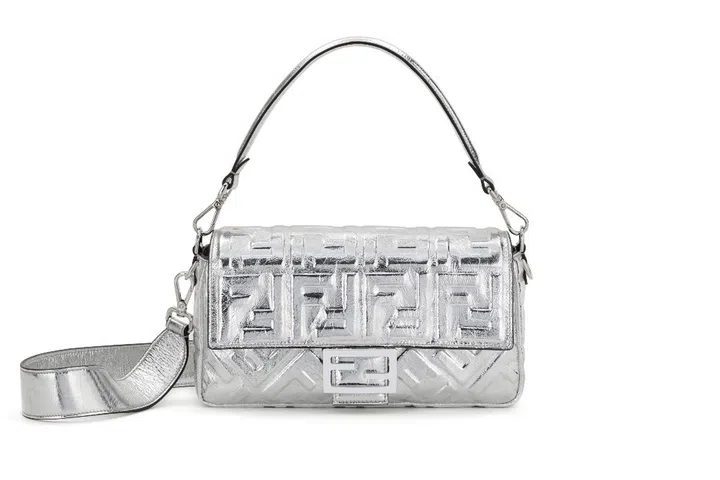 Meanwhile Fendi’s iconic Baguette pochette comes in a variety of personalities: razor-slick in glossy embossed leather; fun and trendy in a new pillowy leather finish; and eclectically cool in smooth nappa and with its signature FF metal buckle applied not as the fastening, but as bags loops on both sides – a style dubbed the Baguette Twist.