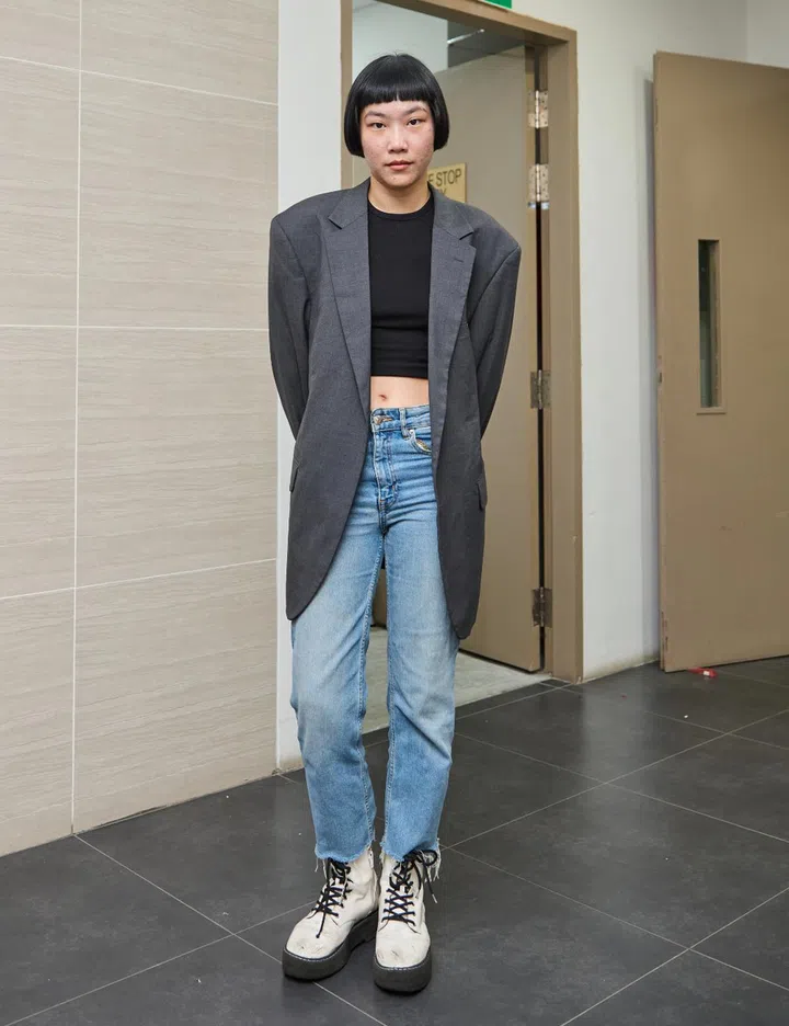 His personal style: "Experimental yet practical, suitable for Singapore's weather. My style embodies elements of minimalism, hints of old-money sophistication, and a touch of starboy flair."