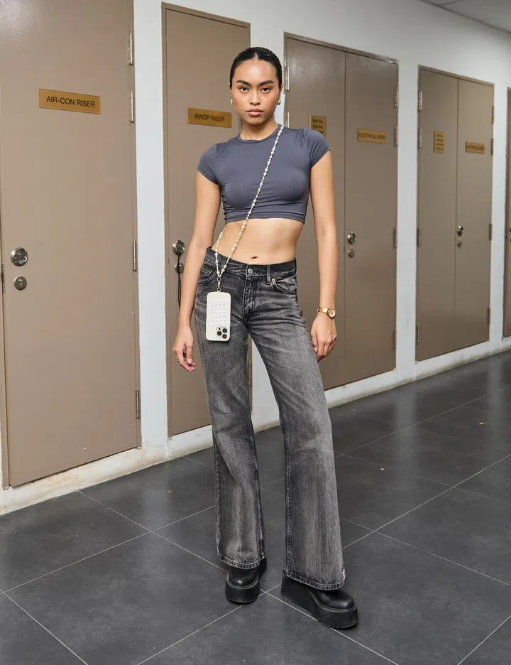 Her fit: "It's actually my go-to casting outfit: simple, body-hugging, and all-black. I bought this top from Supre when I was in Australia, and my jeans are from Zara. The boots are from Pull & Bear, and the phone strap is from Casetify. My outfit is essentially something a model would live in."